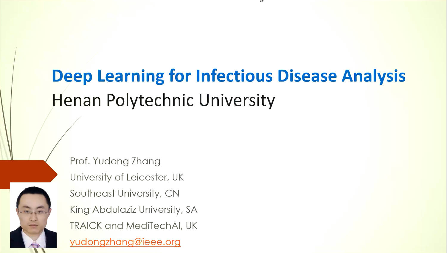 近日,莱斯特大学张煜东教授应邀参加565net必赢最新版首页官网第四届研究生学术文化节,为师生线上作题为《Deep I earning for Infectious Disease Analysis》的学术报告。会议由唐朝生主持,部分教师和课题组研究生参加。